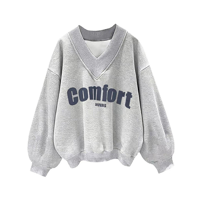 Women's Sweatshirt Casual Letter Street Dailywear V Neck Print Long Sleeve Black Purple Gray Fall Winter