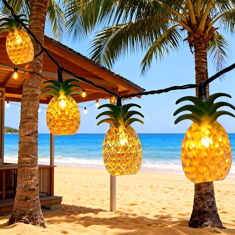 Solar Powered Pineapple String Lights 30 LEDs Summer Tropical String Lights 4.5m for Patios Families Wedding Parties Bedrooms Birthdays Hawaiian Tropical Garden Decoration