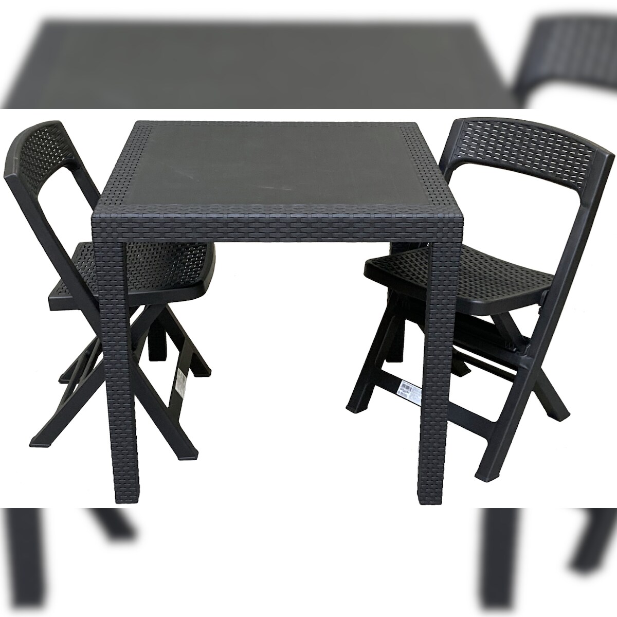 Gartenset Sitzgruppe Tisch Stuhl 3-tlg 76x48x47cm Schwarz Kunststoff Garten Bistro Rattan-Optik