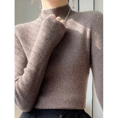 Per donna Blusa Tinta unica Elegante Essenziale Casual Manica Lunga Collo Alto Top Regolari Quotidiano Nero Bianco Marrone Verde Primavera Autunno Inverno