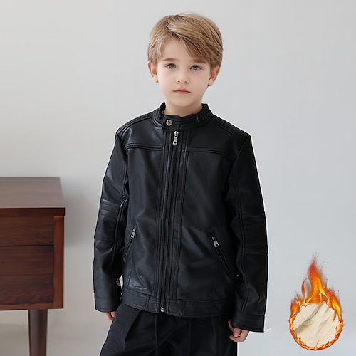 Bambini Ragazzi Giacca in pelle nera Giacca in pile Giacca di pelle Capispalla Semplice Manica Lunga Con zip Impermeabile Tenere al caldo Antivento Cappotto Quotidiano Moda Casual Nero Primavera