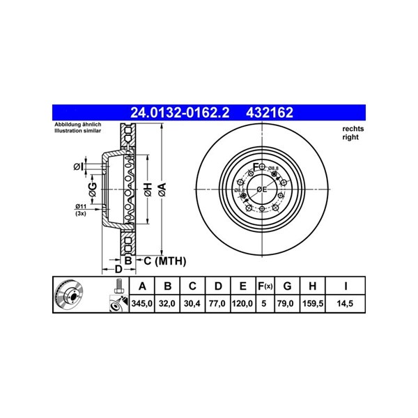Jarrulevy, Etuakseli, oikea Ate 24.0132-0162.2 - bmw 5 [e39] - OE 34 11 2 228 846, 34 11 2 282 804