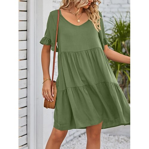 Per donna Mini Abito Vestito Casual Abiti Peplo Elegante Moda Moderno All'aperto Vacanza Uscire Vestibilità comoda Semplice Manica Corta Scollo a V Nero Rosa Arancione Verde Estate Primavera