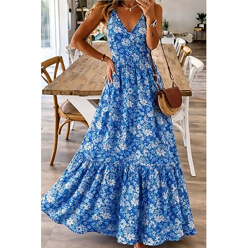 Per donna Abito maxi Abito Boho Vestito Estivo Vestito Casual Abito Etnico Elegante Bohemien Vacanza Spiaggia Ferie Data Vestibilità comoda Floreale Grafico Boho Paisley Damasco Senza Maniche Scollo