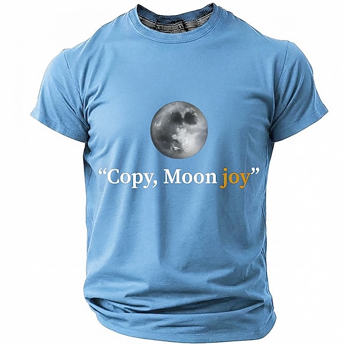T-shirt da uomo con stampa copy, moon joy e luna piena, maniche corte, girocollo, astronomia, amante dello spazio, citazione umoristica sarcastica, blu petrolio, vestibilità comoda, regalo di