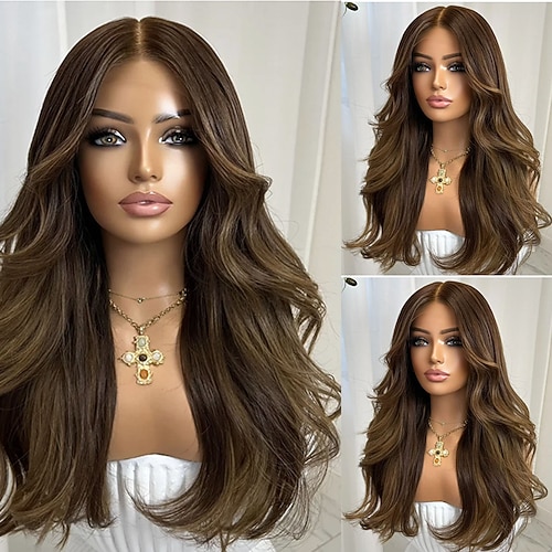 Capelli vergini non trattati 13x4 Pizzo Frontale Parrucca Parte di mezzo Brasiliano Ondulato Multicolore Parrucca 130% 150% Densità dei capelli con i capelli del bambino Capelli evidenziati