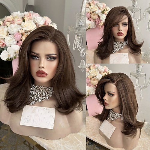 Capelli umani 5x5 Chiusura 13x4 Fronte in Pizzo Parrucca Riga Libera Capelli brasiliani Ondulato Marrone Naturale Parrucca 150% 180% Densità dei capelli con Capelli di Bambino Attaccatura Naturale