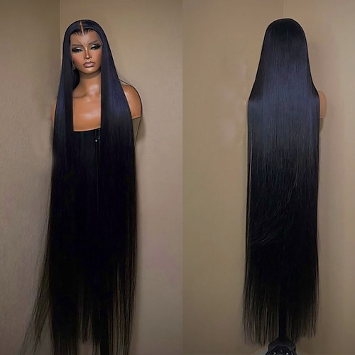 Capelli umani 5x5 Chiusura 13x4 Fronte in Pizzo Parrucca Riga centrale Capelli brasiliani Liscio Naturale Parrucca 150% 180% Densità dei capelli con Capelli di Bambino Liscio Attaccatura Naturale