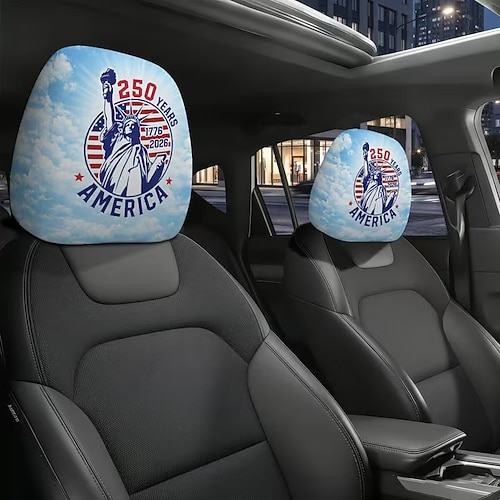 Copri poggiatesta per auto con stampa della bandiera americana dell'indipendenza, 2 pezzi, protezione per sedili con design ad alta elasticità e senza imbottitura, copri poggiatesta per sedili auto,
