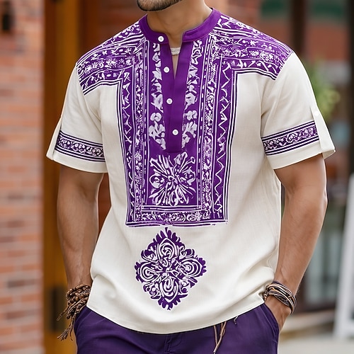 Per uomo Geometrico Etnico Floreale intricato Camicia Camicia button-down Maglia Henley Manica Corta Vintage Retrò Ferie Casual Quotidiano Estate Primavera Colletto Mao Colletto Henley Stampa 3D