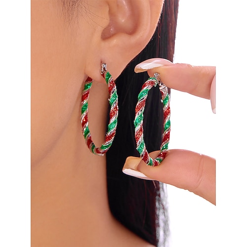 orecchini a cerchio natalizi da donna, design intrecciato rosso e verde, materiale in lega, perfetti per feste e regali