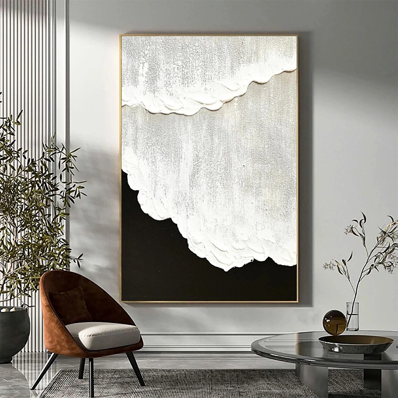 Handmade Oil Painting Canvas Wall Art Decoration Abstract Texture Painting Black and White Waves Living Room Entrance Hall Decoration Home Decor Rolled Frameless Unstretched Painting