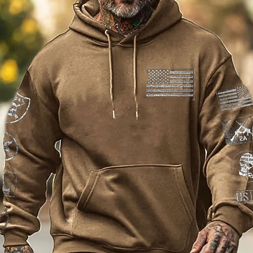 Per uomo Stampe Grafiche Bandiera Nazionale Felpa con Cappuccio Moda Quotidiano Casual Manica Lunga Con Cappuccio Vacanza Feste Abbigliamento casual alla moda Festival Nero Bianco Blu reale Marrone
