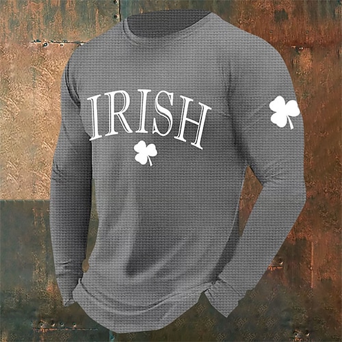 Giorno di San Patrizio San Patrizio Festa di San Patrizio Per uomo Trifoglio Camicia a nido d'ape Maglietta Manica Lunga maglietta Girocollo Camicia Sport Moda Classico Quotidiano Vacanza Feste Nero