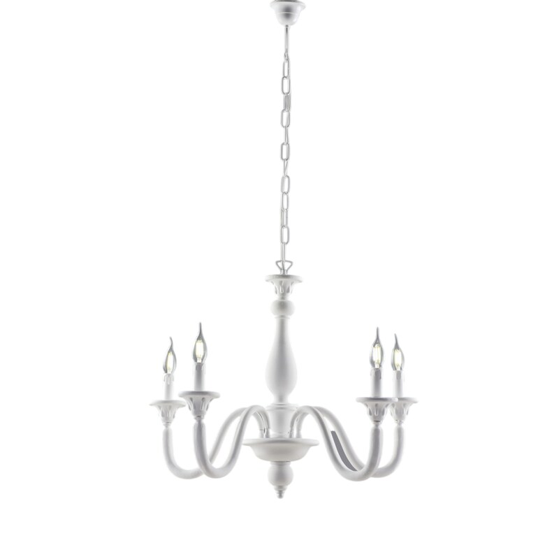 Bonetti Illumina Lucca - Schäbiger weißer Holzkronleuchter 5 Lichter 116 - Ø62 - BL271-5-BCO