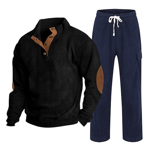 Per uomo Maglia Tuta da Ginnastica Set di abiti Collo alla coreana All'aperto Quotidiano Sportivo Coulisse Tasca Blocco di colori Nero Blu marino Marrone Poliestere Velluto a coste Abbigliamento