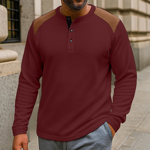 Per uomo Maglia Henley a nido d'ape Maglietta Manica Lunga Henley Autunno Primavera Autunno Blocco di colori Moda Designer Essenziale Blocco di colore Vacanza Streetwear Casuale Nero Bianco Rosso