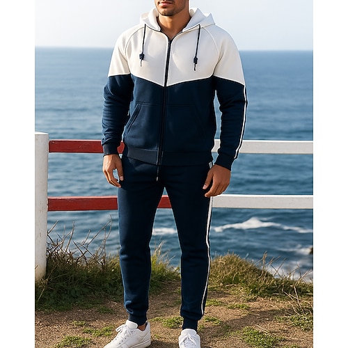 Per uomo Tuta da Ginnastica Tuta da Jogging Set di tute da ginnastica Con zip Con cappuccio Blocco di colori Completo Abbigliamento Autunno Inverno Nero Verde militare All'aperto Viaggio Sportivo