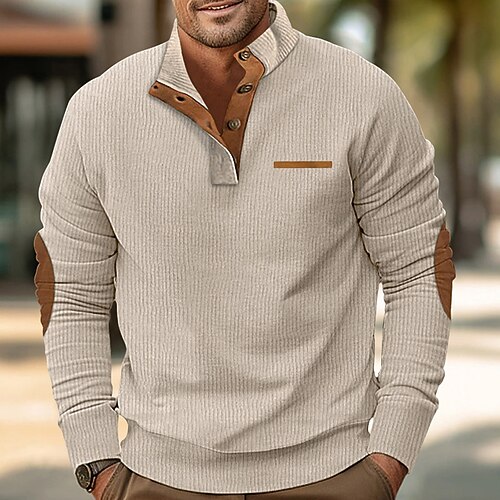 Per uomo Maglia Aalbicocca Nero Bianco Vino Verde militare Colletto Mao Blocco di colori Patchwork Sport Outdoor Quotidiano Ferie Poliestere Velluto a coste Streetwear Essenziale Casual Primavera
