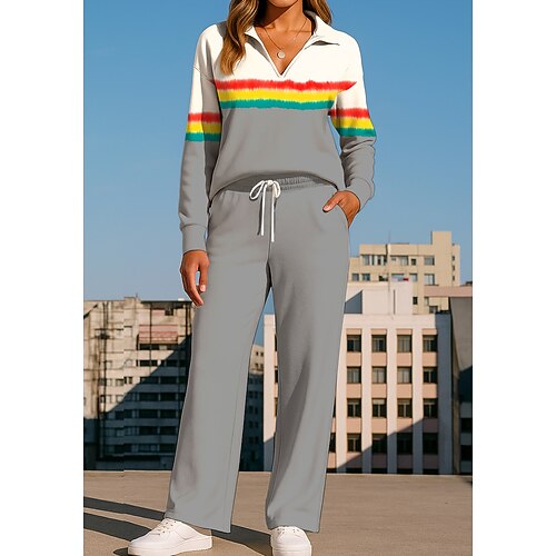 Per donna Caldo Moda Set da due pezzi Tuta Set di Pantaloni Manica Lunga Manica a Vescovo Girocollo Grafico Lettera Stampato All'aperto Vacanza Casuale Nero Rosa Rosa scuro Autunno Vestibilit