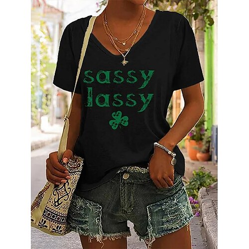 Festa di San Patrizio Per donna Maglietta Grafico Lettera Elegante Classico Casual Manica Corta Scollo a V Top Regolari Quotidiano Stampato Nero Bianco Verde Estate Primavera