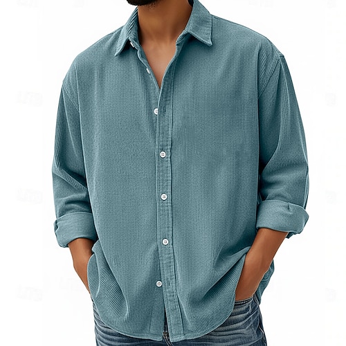 Per uomo Camicia Camicia casual Camicia di Velluto a Coste Camicia con Bottoni Blu Nero Bianco Blu marino Viola Manica Lunga Collo ripiegato Casuale All'aperto Caldo Abbigliamento Vintage Moda Casual