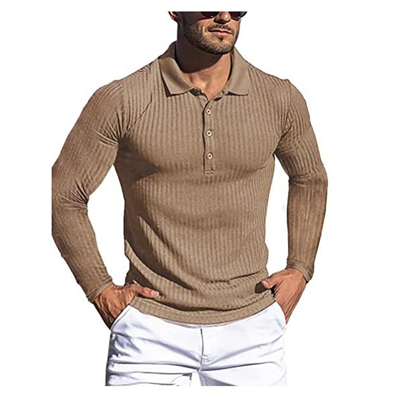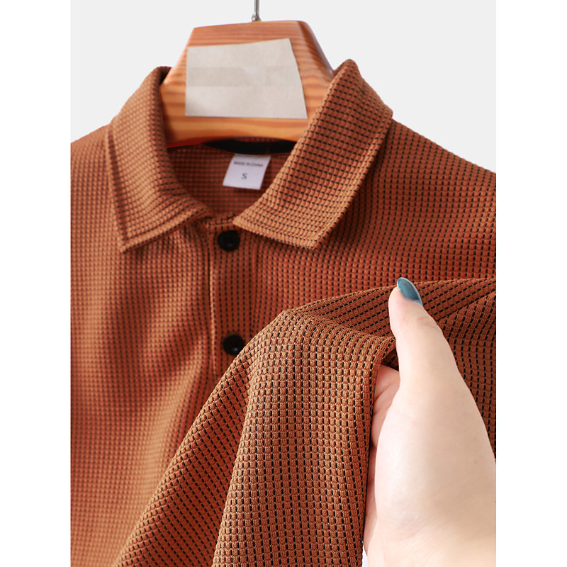 Men's Waffle Polo Shirts Polo Shirts Casual Street Lapel Long Sleeve Basic Modern Plain Buttons Spring Fall Regular Fit Dark Brown Black White Light Green Red Navy Blue Waffle Polo Shirts