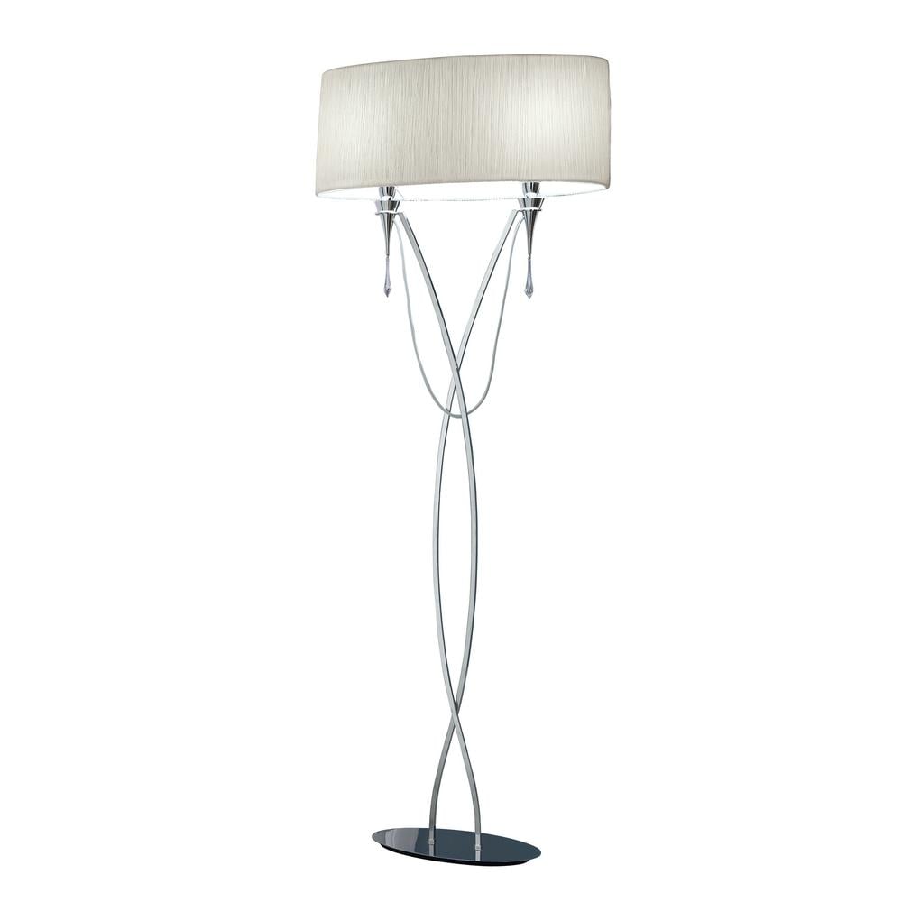 Lucca Floor Lamp 2 Light E27 Polished Chrome With White Shade & Clear Crystal Mantra