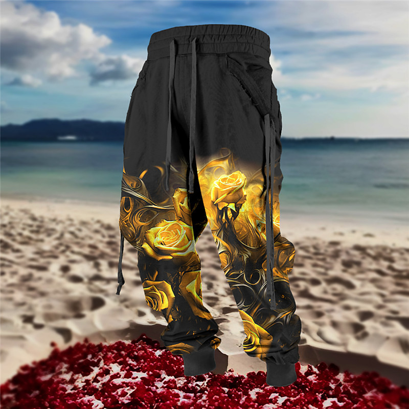 Valentine's Day Rose Men's Romantic 3D Printed Sweatpants Joggers Pants Trousers Elastic Waist Drawstring Comfort Outdoor Daily Wear S TO 3XL