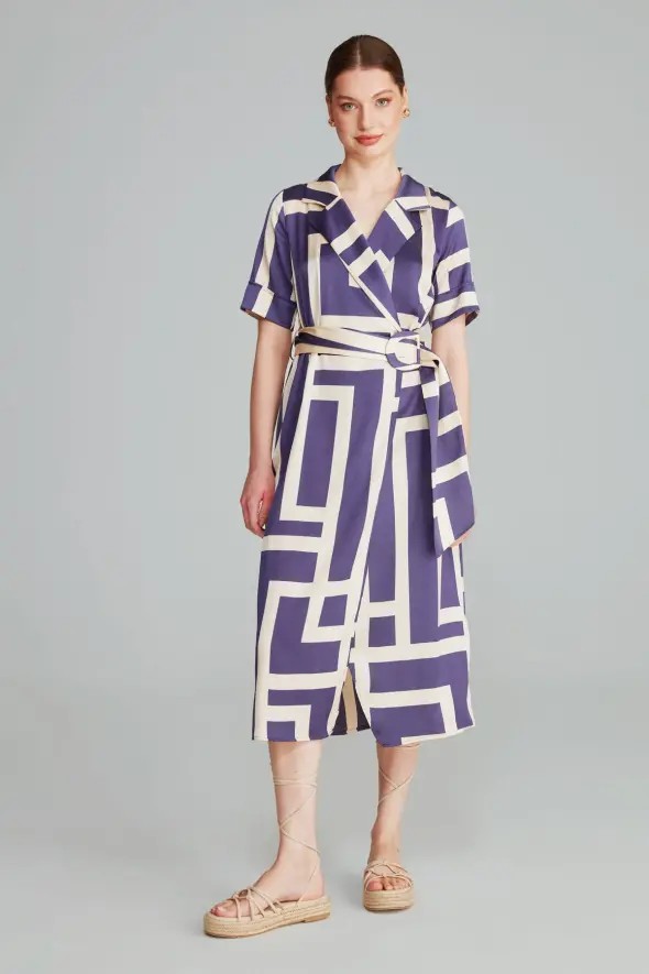 Gusto Womens Printed Long Wrap Dress With Belt - Navy - Size X-large | Gusto Sale | Discount Designer Brands
