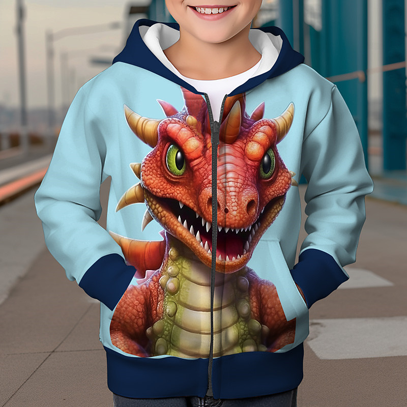 Boys 3D Dinosaur Hoodie Coat Outerwear Long Sleeve 3D Print Fall Winter Fashion Streetwear Cool Polyester Kids 3-12 Years Outdoor Casual Daily Regular Fit
