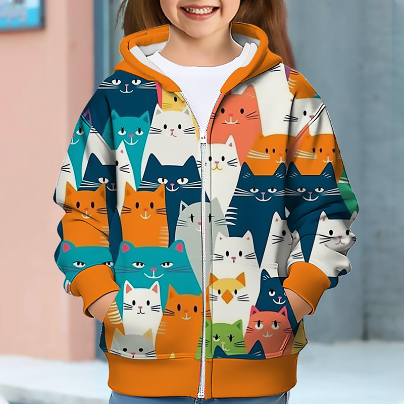 Girls' 3D Floral Hoodie Coat Outerwear Pink Long Sleeve 3D Print Fall Winter Active Fashion Cute Kids 3-12 Years Outdoor Casual Daily Regular Fit