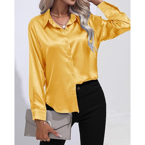 Per donna Camicia Elegant Raso/Satin Blusa Semplice Elegante Vintage Manica Lunga Colletto a Camicia Top Regolari Ferie Uscire Bottoni Giallo Rosso Blu Reale Verde smeraldo Rosa Estate Primavera