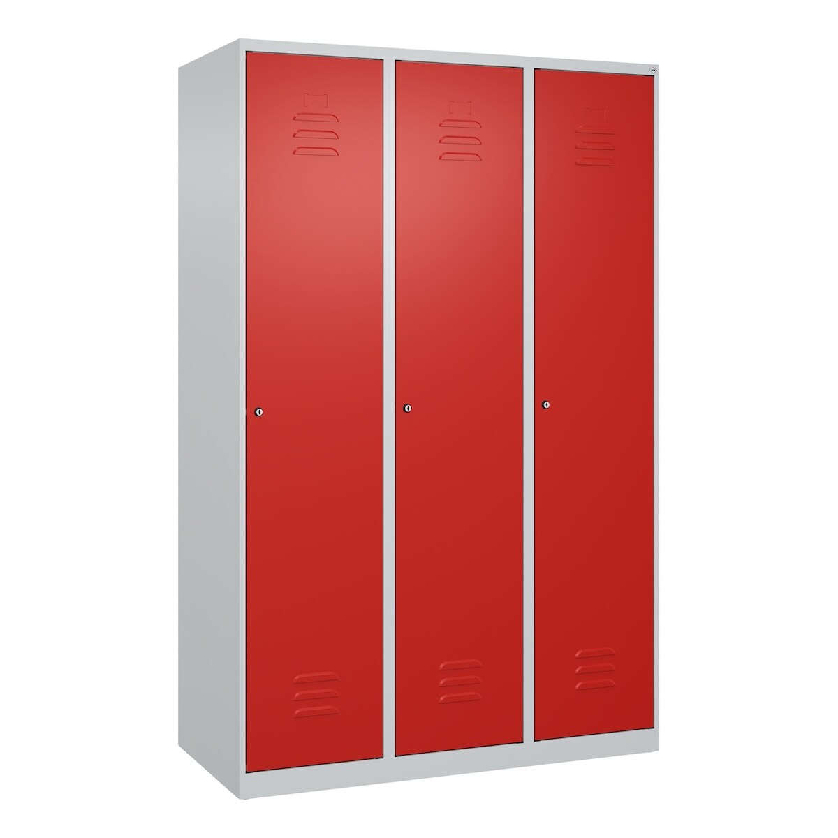 C+P Spind Classic PLUS, 3 Abteile, HxBxT 185x120x50cm, Zylinderschloss, Hellgrau/Rot von PROREGAL