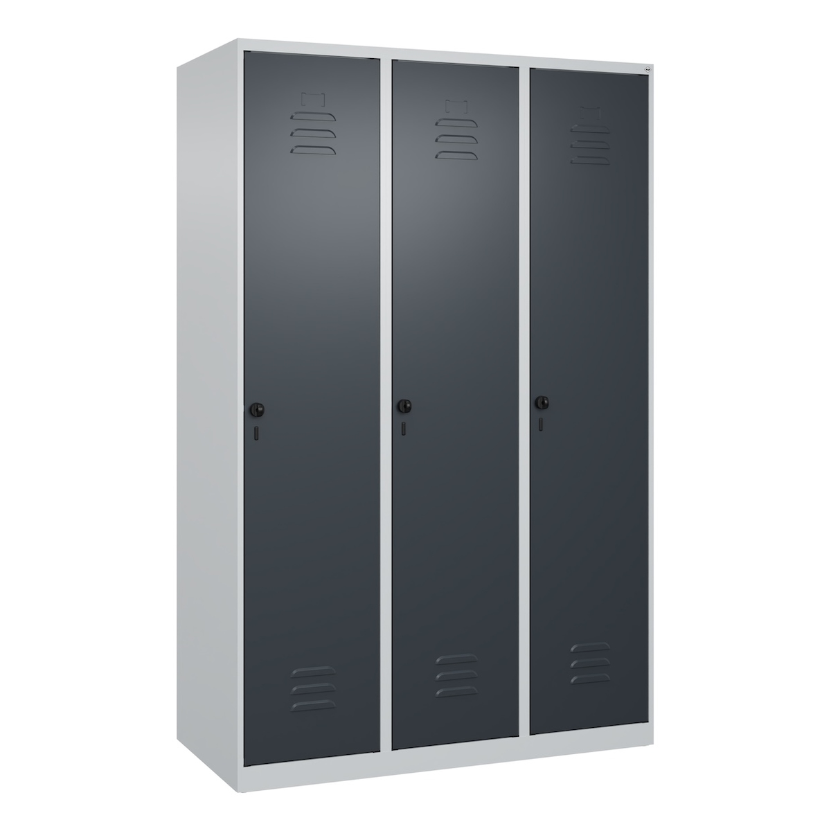 C+P Spind Classic PLUS, 3 Abteile, HxBxT 185x120x50cm, Sicherheitsdrehriegel, Hellgrau/Anthrazit von PROREGAL