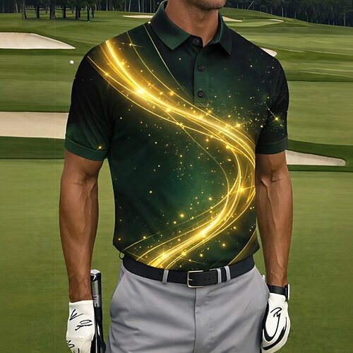Per uomo Astratto Golf Polo Sportivi Manica Corta Magliette polo Camicie con Colletto Casual Athleisure Bottoni Estate Primavera Blu Viola Oro
