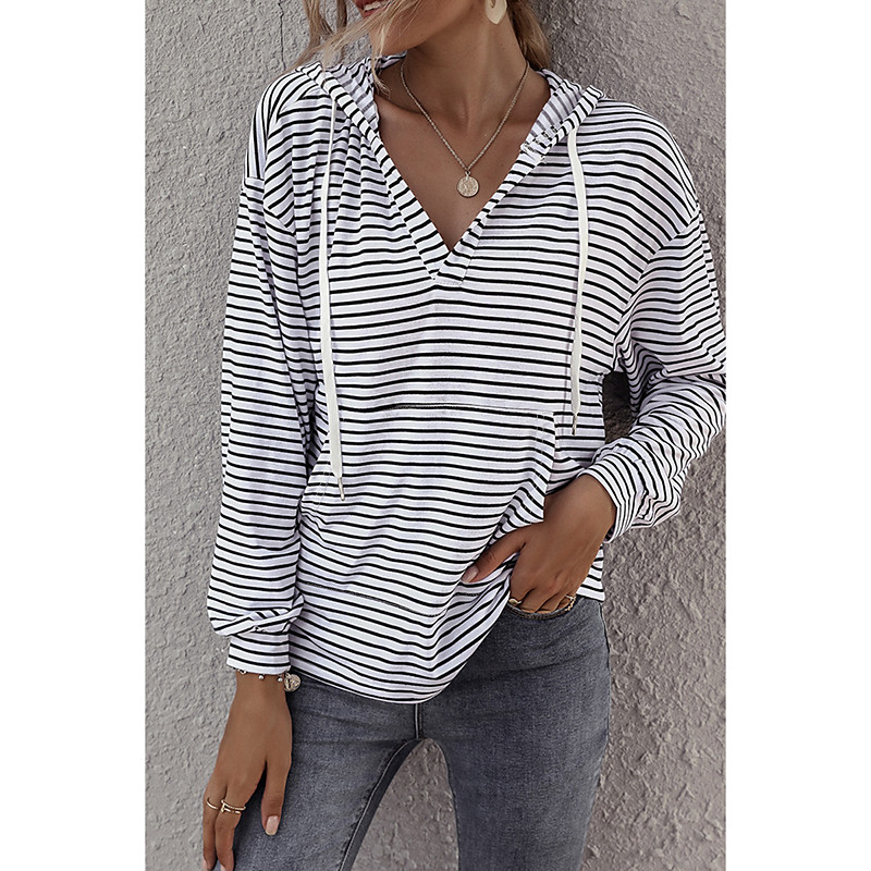 Women's Blouse Striped Casual Long Sleeve Hooded Regular Tops Daily Going out Pocket White Brown Summer