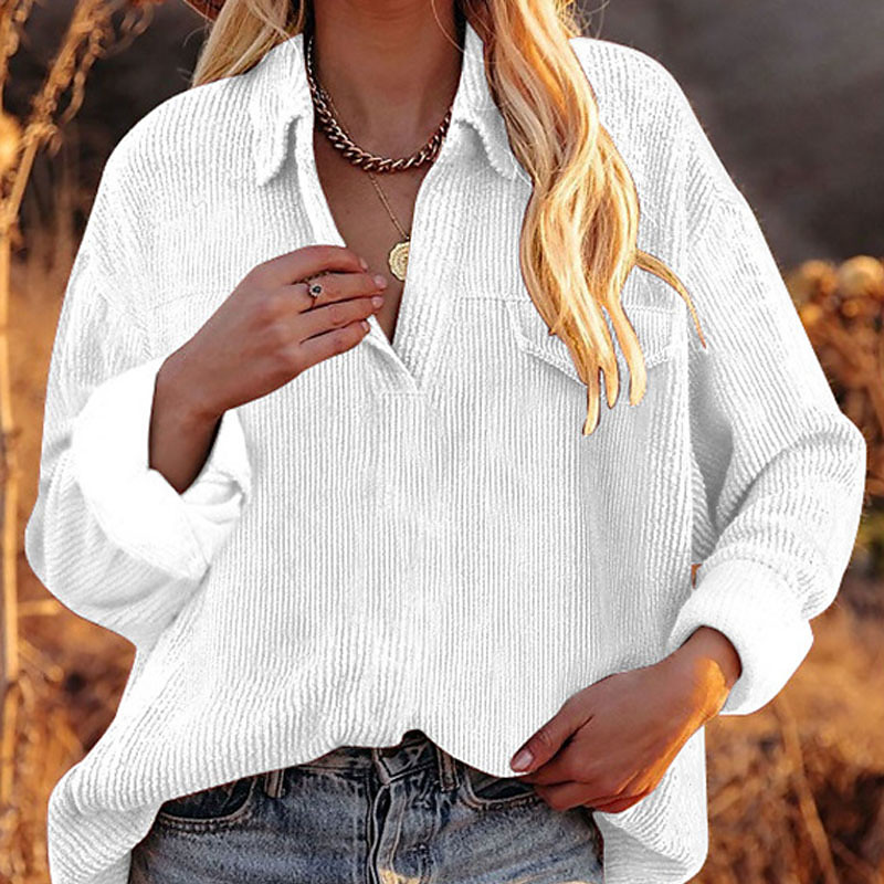 Women's Shirt Dressy Tops Solid Color Plain Elegant Vintage Ladies Long Sleeve Shirt Collar Regular Tops Work Daily Holiday Patchwork Pocket Royal Blue Blue Sky Blue Purple Brown Fall Winter