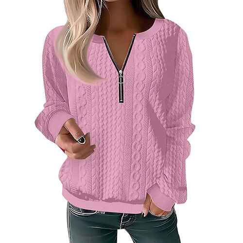 Per donna Tunica Tinta unica Elegante Vintage Essenziale Manica Lunga Girocollo Top Regolari Quotidiano Zip a un quarto Nero Rosso Blu Verde Cachi Primavera Autunno