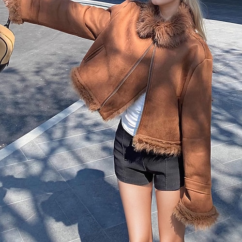 Per donna Cappotto Invernale Giacca Invernale Caldo Confortevole Cerniera Bordo in pelliccia sintetica Attivo Moda Tinta unica All'aperto Vacanza Casuale Uscire Corto Collo ripiegato Vestibilit