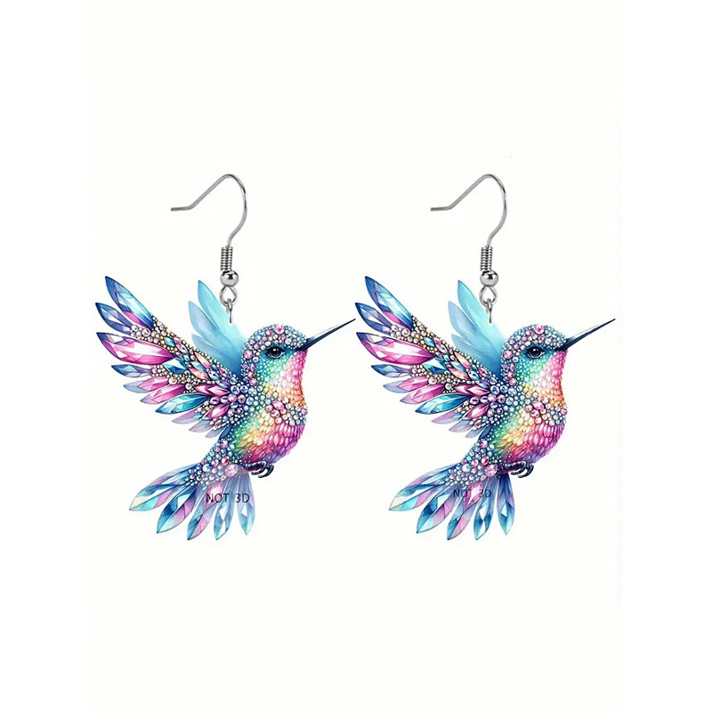 Colorful Hummingbird Dangle Earrings – Lightweight Stained Glass Design for Women, Perfect for Casual, Artistic Occasions and Vacation Wear