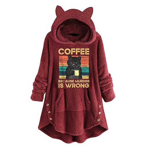 Per donna Felpa con cappuccio Geometrico Gatto Casual Manica Lunga Con Cappuccio Top corti Streetwear Abbigliamento Quotidiano Casuale Rosa Vino Rosa scuro Grigio scuro Grigio Autunno Inverno