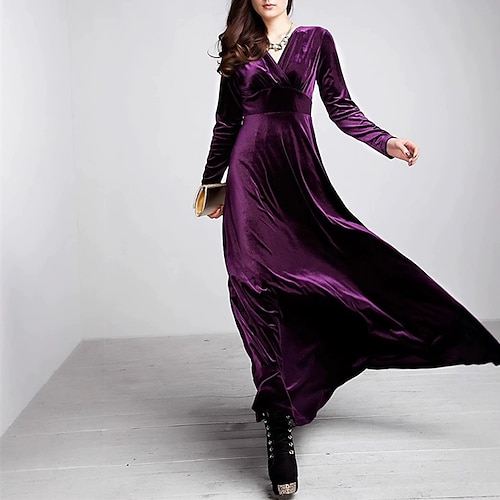 Per donna Abito Midi Abito di Natale Abito in Velluto Abito da Cocktail Elegante Moda Moderno Quotidiano All'aperto Festa serale Vestibilità regolare Semplice Manica Lunga Scollo a V Blu Nero Vino