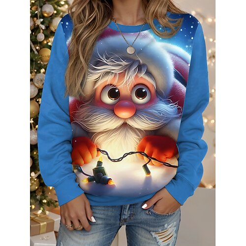 Pullover felpa da donna di Natale con gatto casual maniche lunghe girocollo top regolari streetwear quotidiano casual nero giallo rosso vino blu primavera autunno inverno