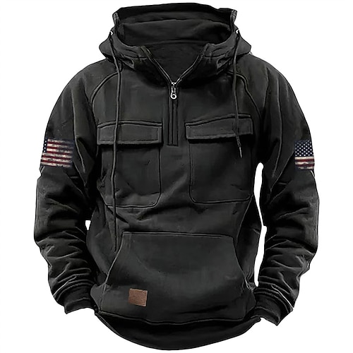 Per uomo Felpa con cappuccio Felpa con cappuccio e zip corta Nero Rosa Vino Blu Verde Con Cappuccio Bandiera Nazionale Coulisse Tasca Sport Outdoor Quotidiano Ferie Streetwear Essenziale Casual