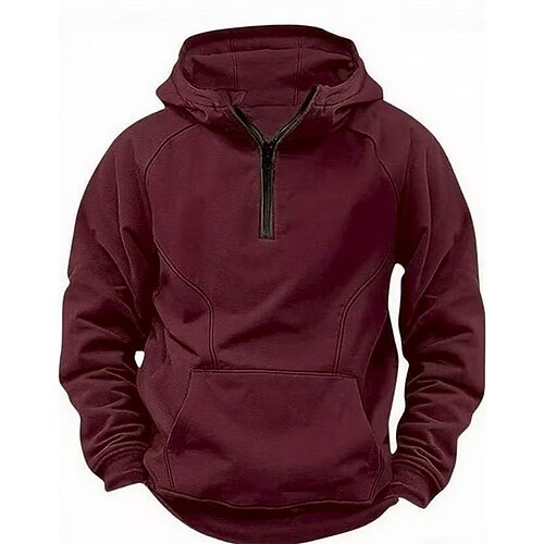 Per uomo Felpa con cappuccio Felpa con cappuccio e cerniera a un quarto Felpa con cappuccio tattica Compatto Rosso bordeaux Nero Vino Verde militare Blu marino Con cappuccio Liscio Tasche Compatto