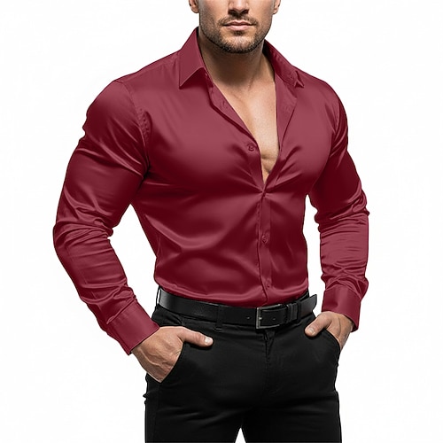 Per uomo Camicia Camicia in raso Camicia elegante Camicia con Bottoni Camicia da Ballo Semplice Balli di fine anno Matrimonio Nero Bianco Vino Blu Manica Lunga Collo ripiegato Tutte le stagioni