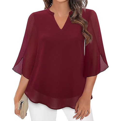 Per donna Blusa Top in chiffon Semplice Elegante Casual Mezza Manica Scollo a V Top Regolari Quotidiano Ferie Uscire Patchwork Nero Rosa Vino Rosso Blu Reale Estate Primavera Autunno