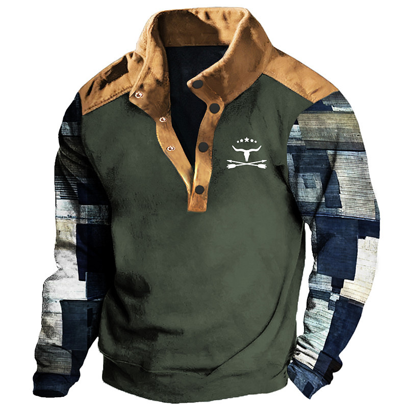 Men's Graphic Color Block Cowboy Sweatshirts Sweatshirt Long Sleeve Sweatshirt Stand Collar Daily Casual Vintage Retro 3D Print Vacation Sports Outdoor Holiday Print Spring Fall