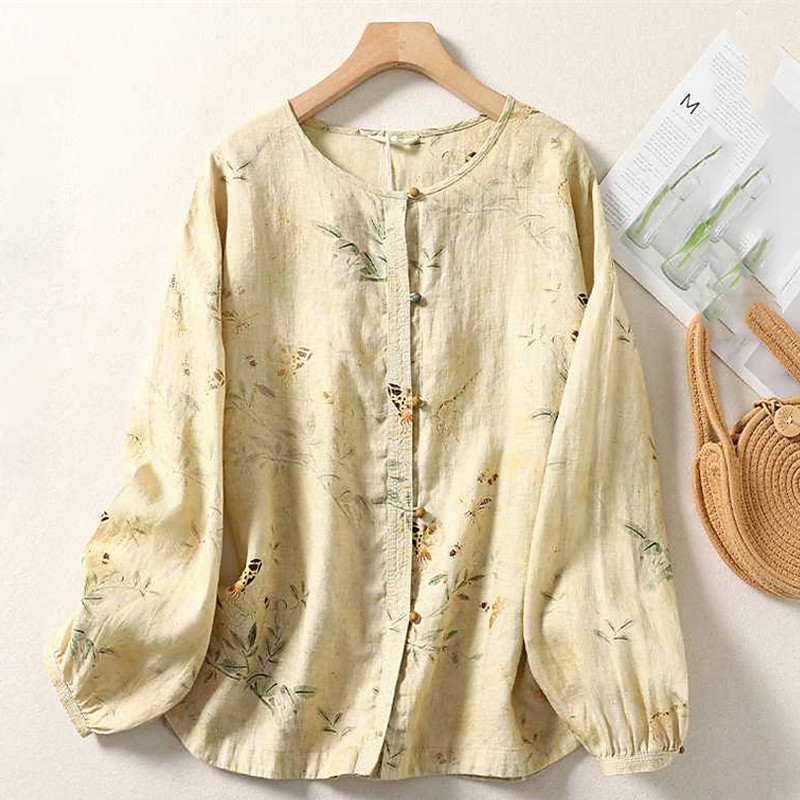Women's Shirt Floral Daily Stylish Basic Long Sleeve Crew Neck Regular Tops Work Daily Holiday Buttons Print Beige Spring Fall